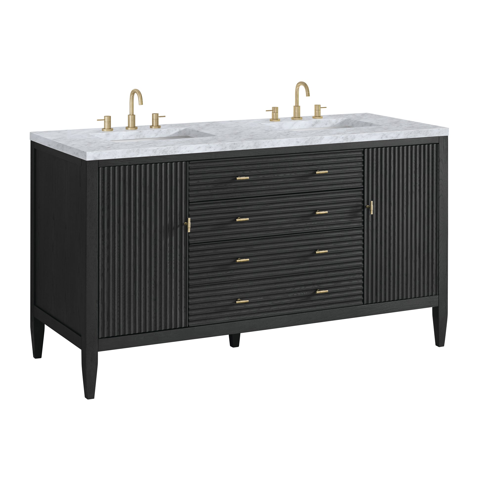 Myrrin 60" Double Vanity, Carbon Oak w/ 3 CM Carrara White Marble Top