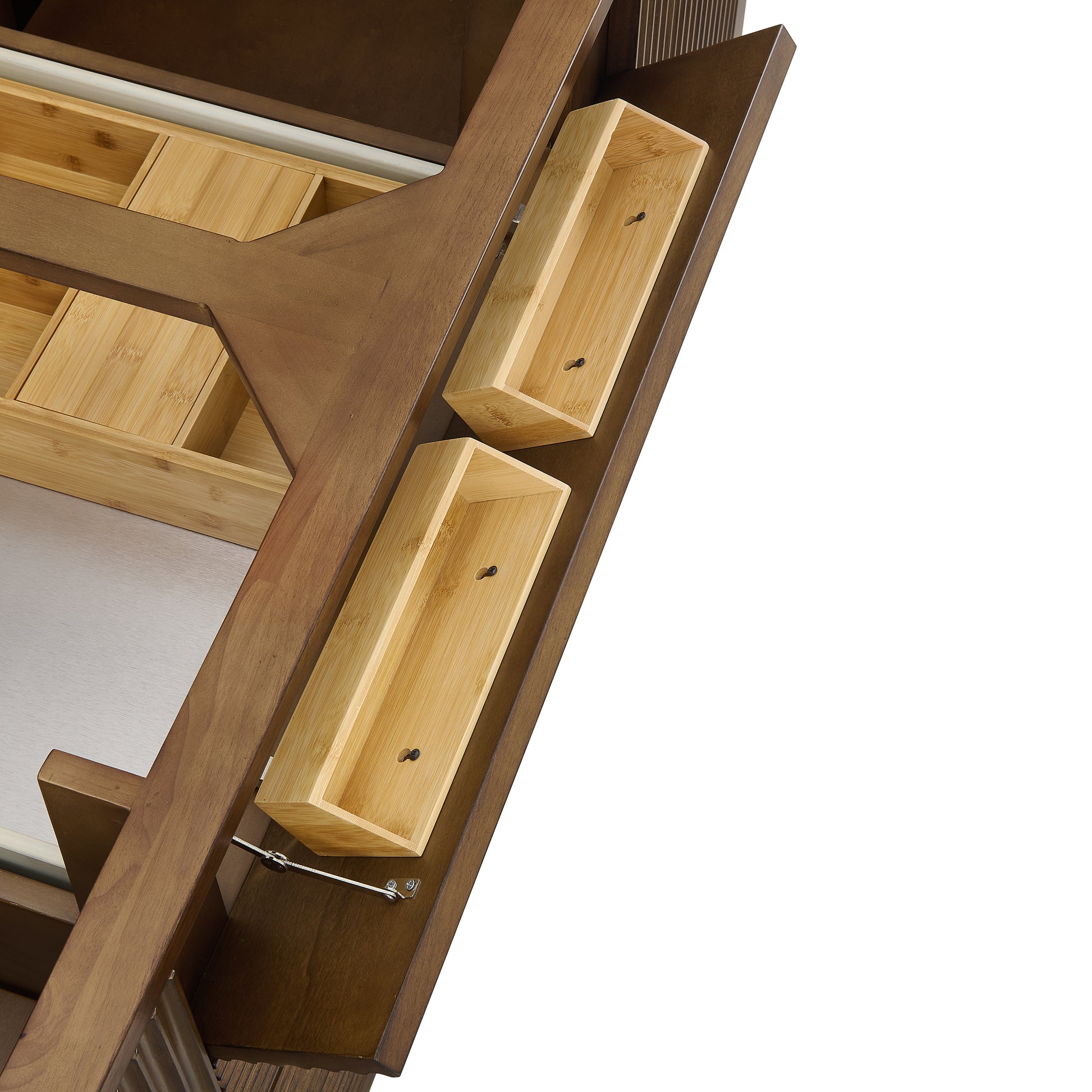 • The drawer boxes feature English Dovetail joinery, and our signature brushed aluminum laminate drawer liners for easy cleaning.