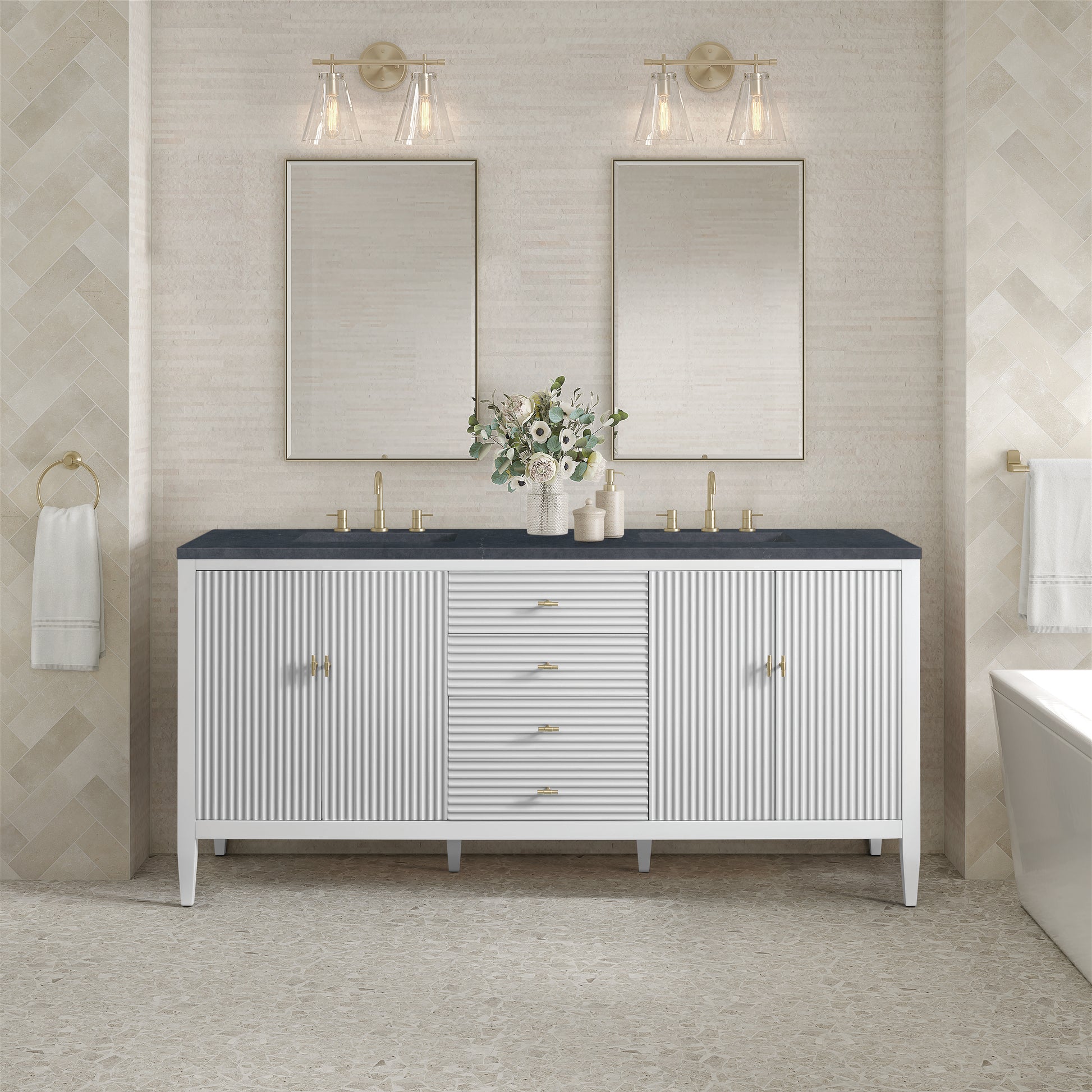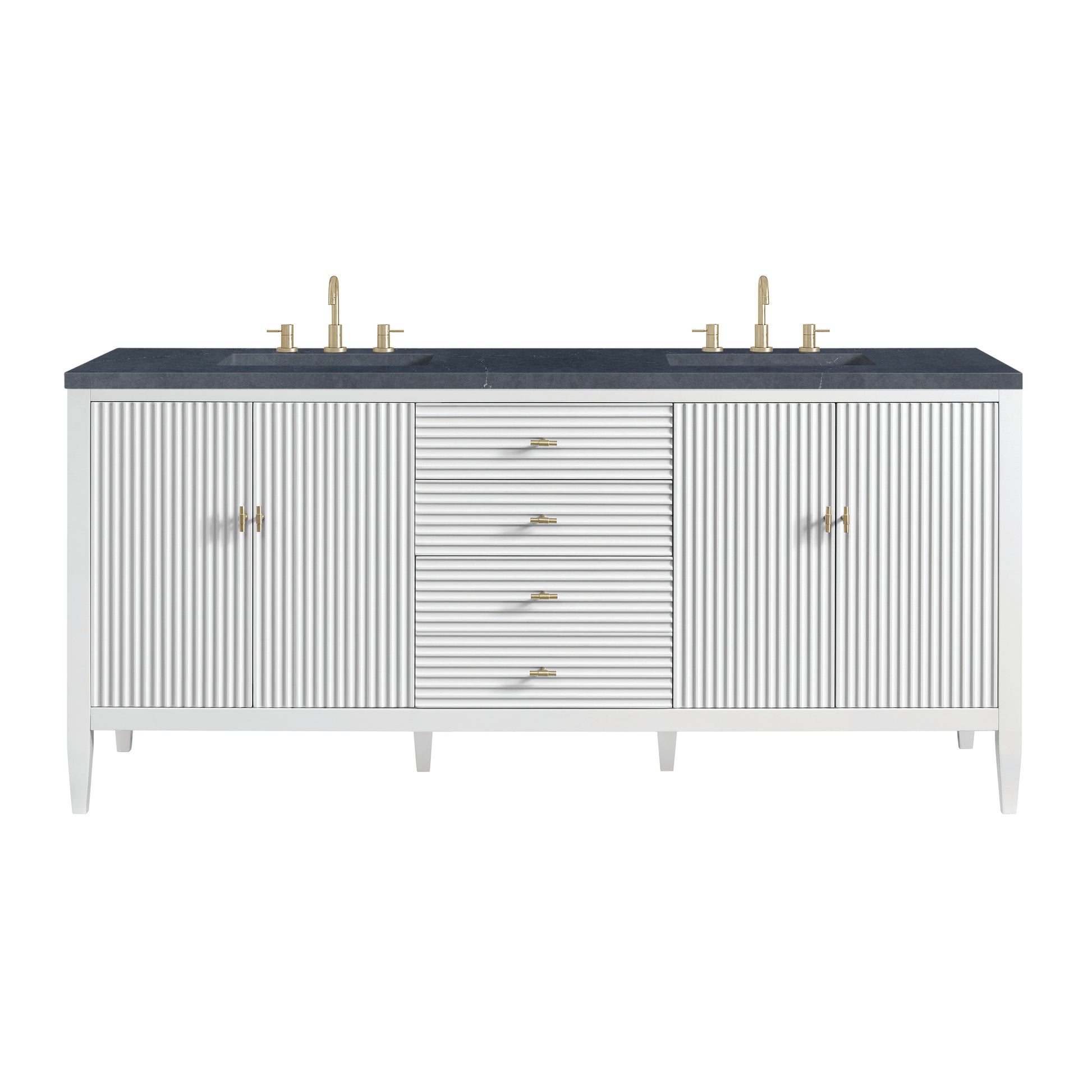 Myrrin 72" Double Vanity, Bright White w/ 3 CM Charcoal Soapstone Silestone Top