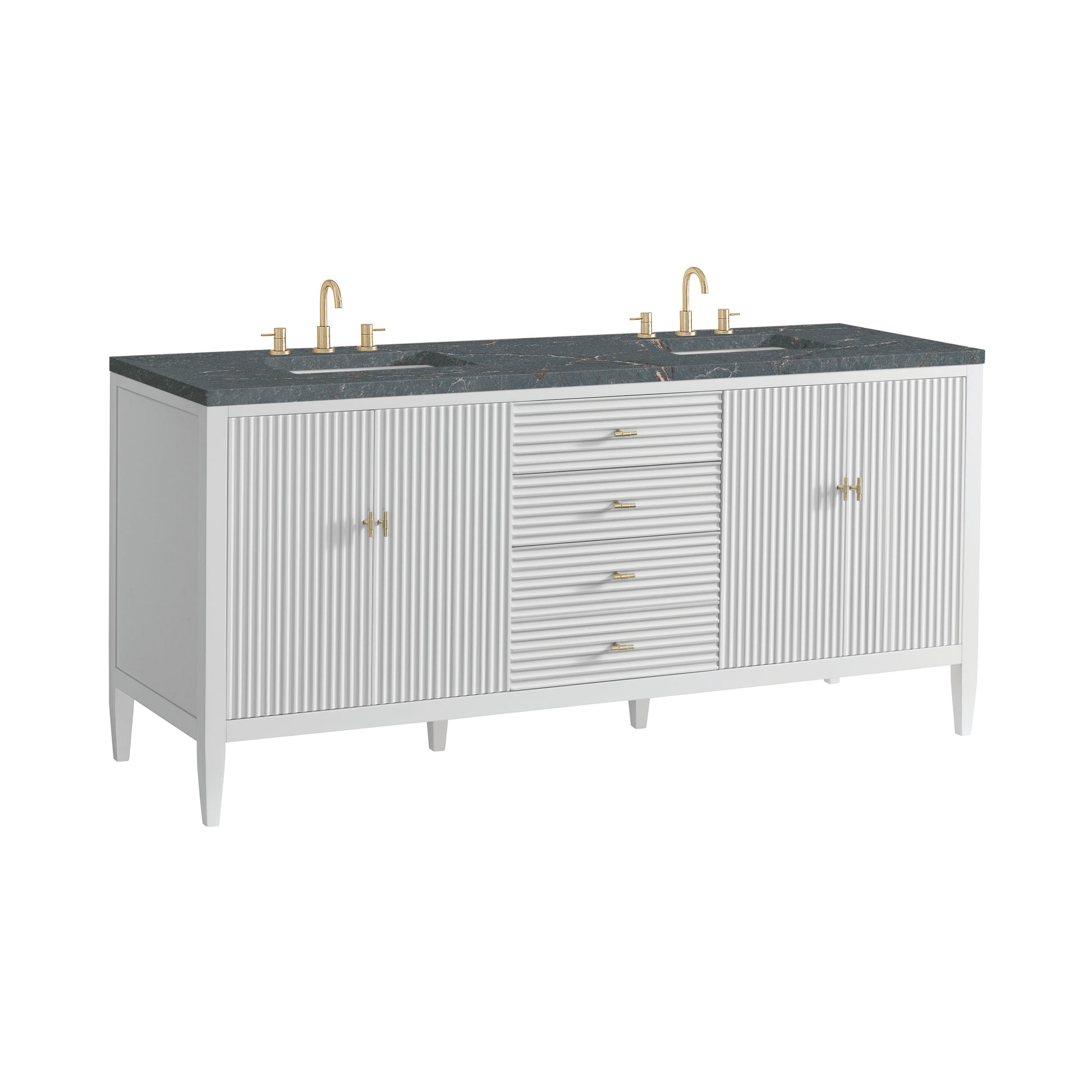 Myrrin 72" Double Vanity, Bright White w/ 3 CM Parisien Bleu Silestone Top