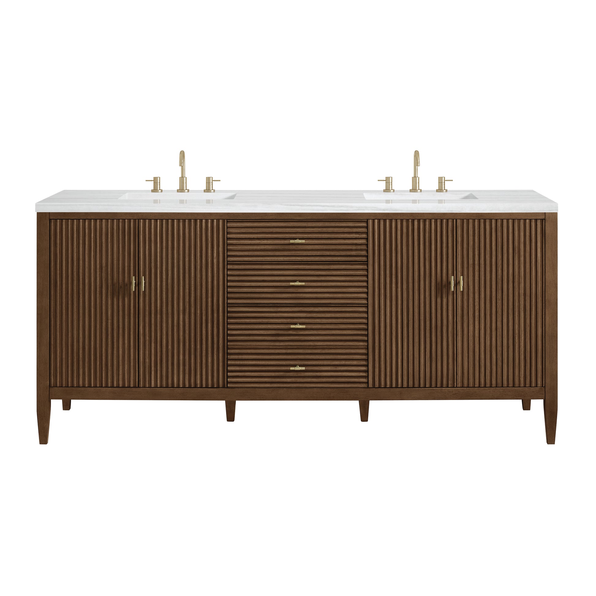 Myrrin 72" Double Vanity, Mid Century Walnut w/ 3 CM Arctic Fall Solid Surface Top
