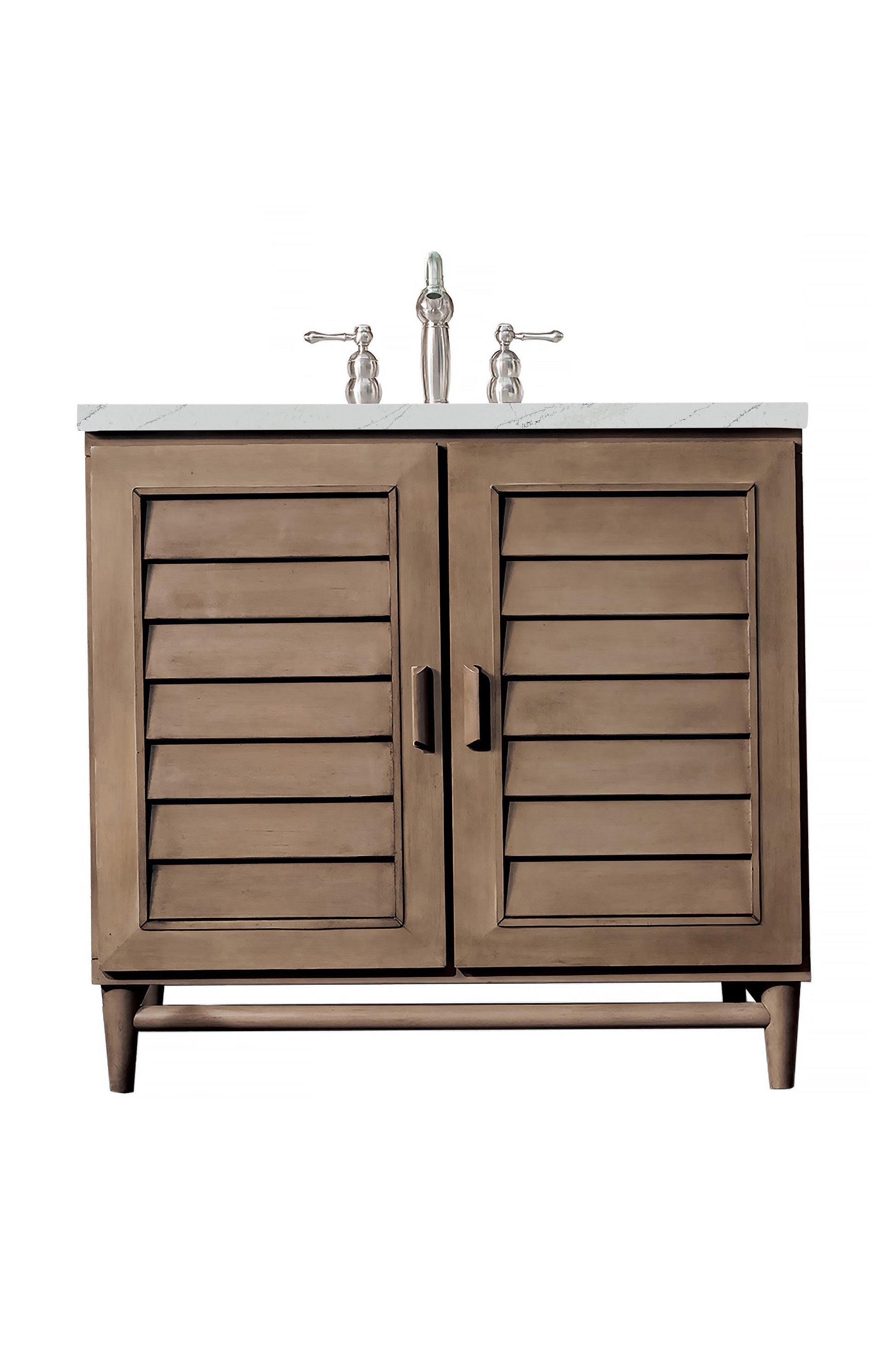 Portland 36" Single Vanity Whitewashed Walnut w/ 3 CM Ethereal Noctis Silestone Top
