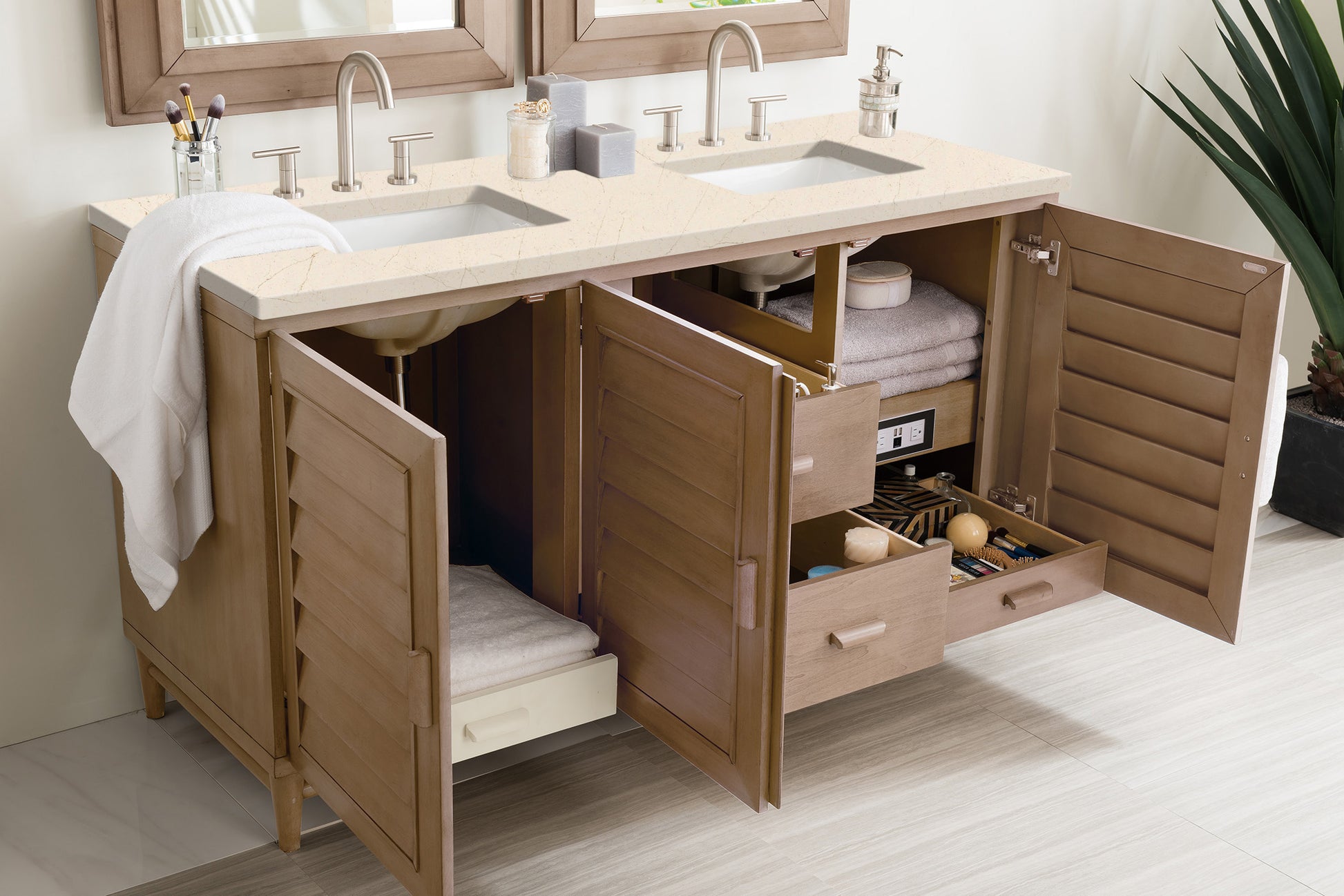 Portland 60" Double Vanity Whitewashed Walnut w/ 3 CM Eternal Marfil Silestone Top