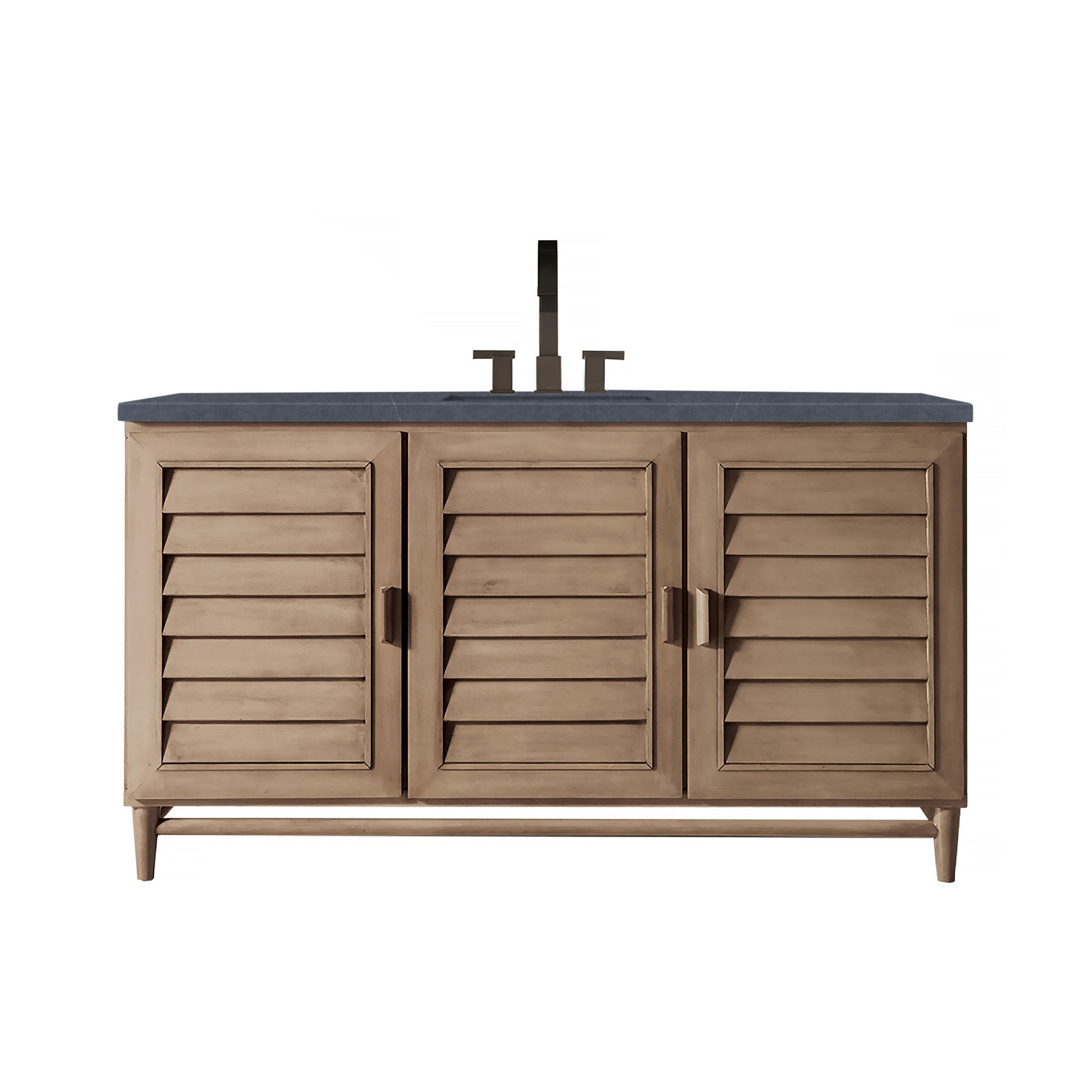Portland 60" Single Vanity Whitewashed Walnut w/ 3 CM Charcoal Soapstone Silestone Top