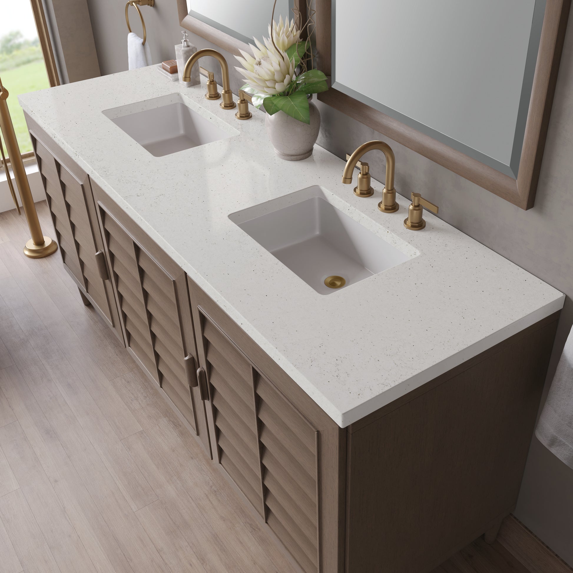 Portland 72" Double Vanity Whitewashed Walnut w/ 3 CM Lime Delight Silestone Top