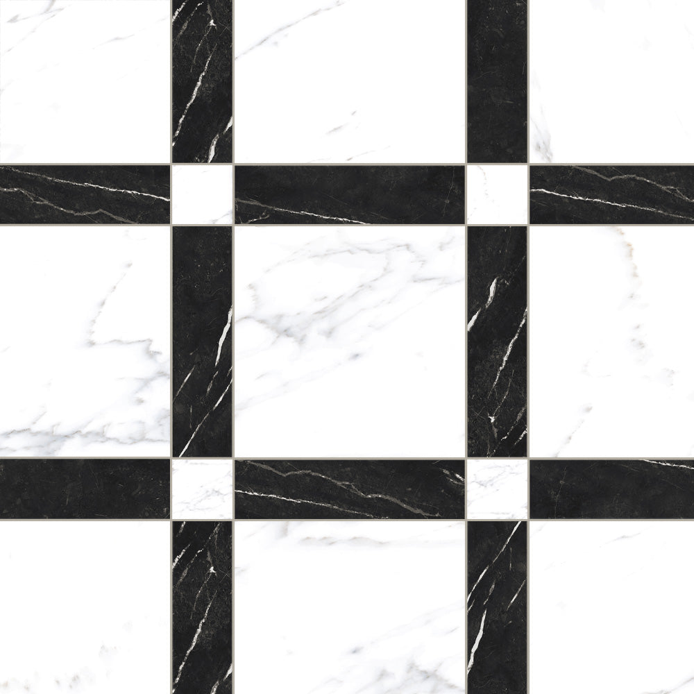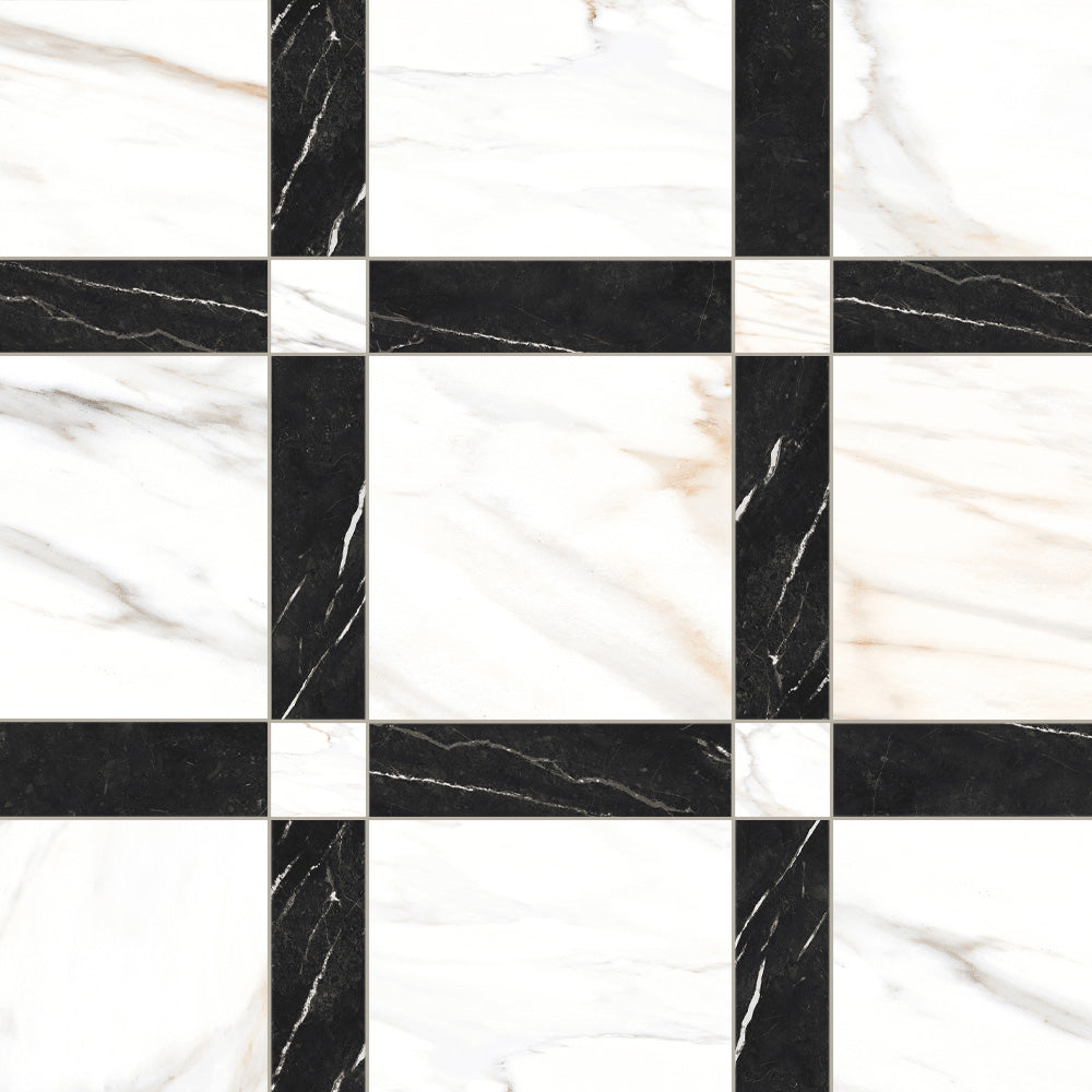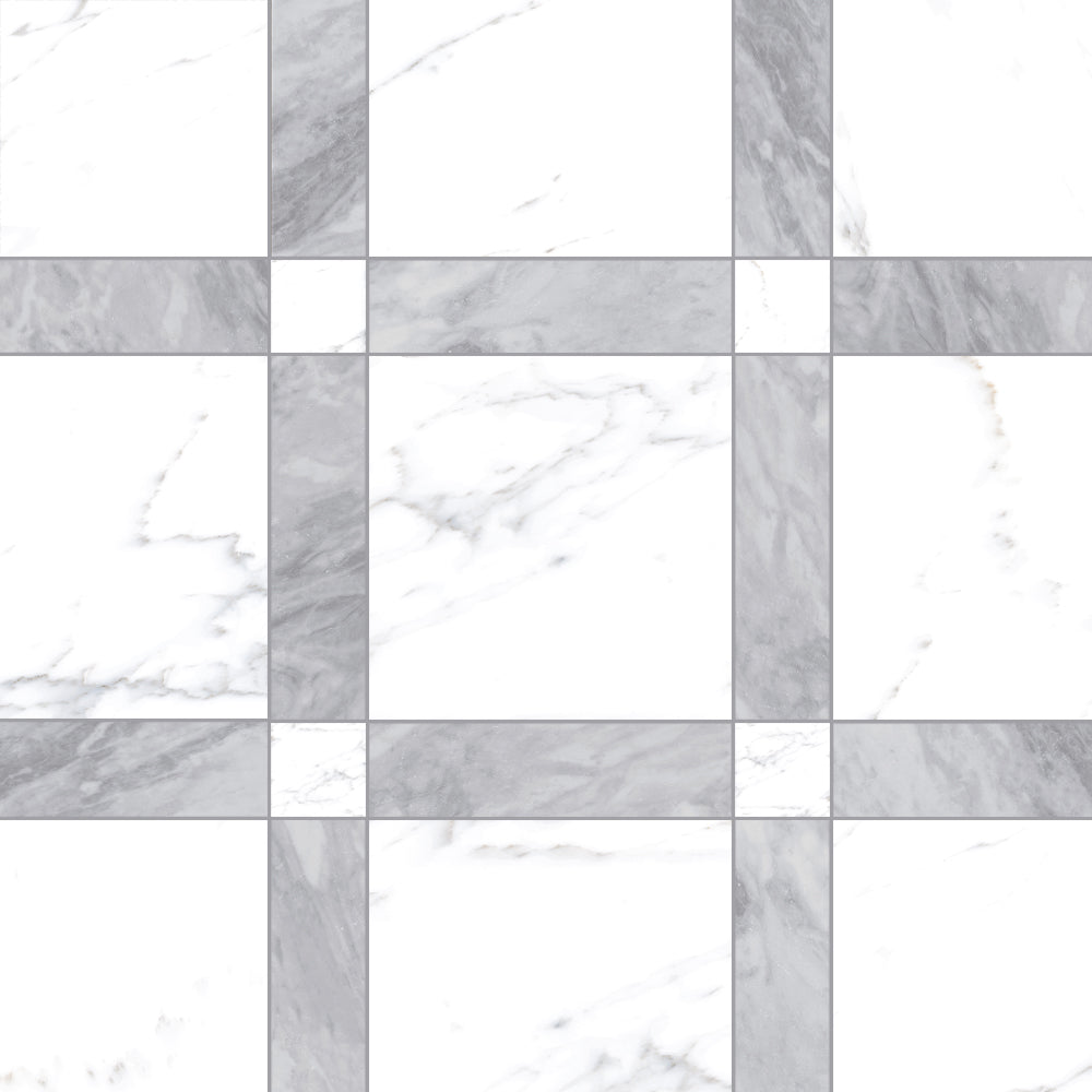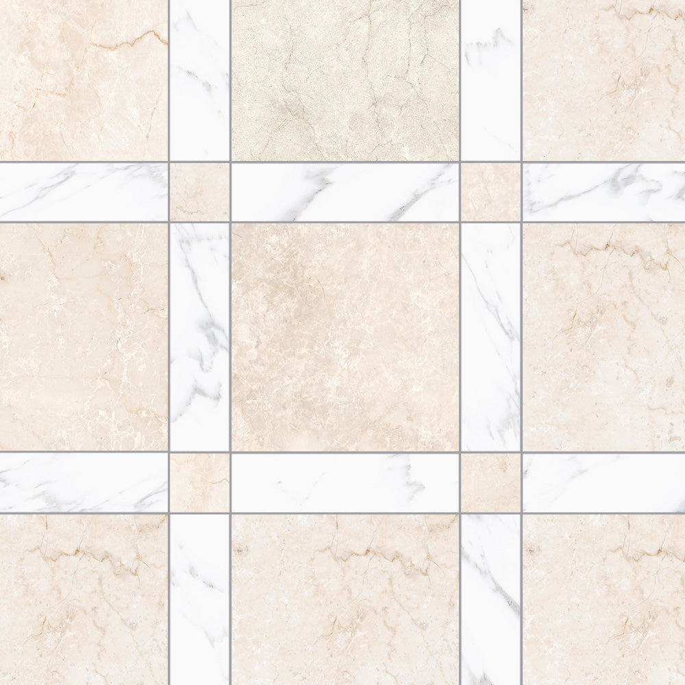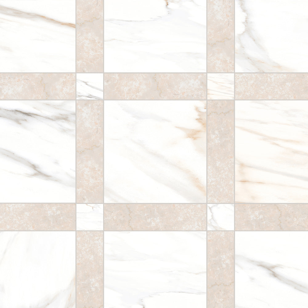 The Tavari Braid Collection introduces a fresh, woven-inspired design that transforms classic geometry into modern artistry. Built on a 10x10 porcelain field, this series features a unique interplay of 2.5x2.5 dot pieces and 2.5x10 rectangular inserts, creating a braided visual rhythm that adds depth and movement to any surface. Drawing from the elegant, marble-inspired tones of the Tavari series, the Braid pattern brings both texture and sophistication to floors, entryways, and feature walls. Its carefully arranged components allow for a pattern that feels handcrafted yet contemporary—perfect for spaces seeking a refined twist on traditional woven motifs.