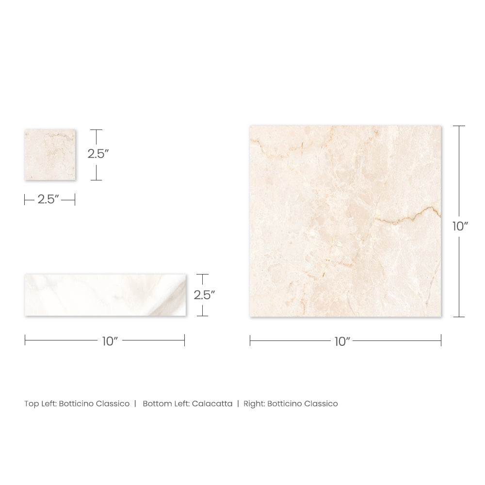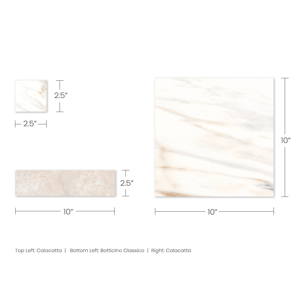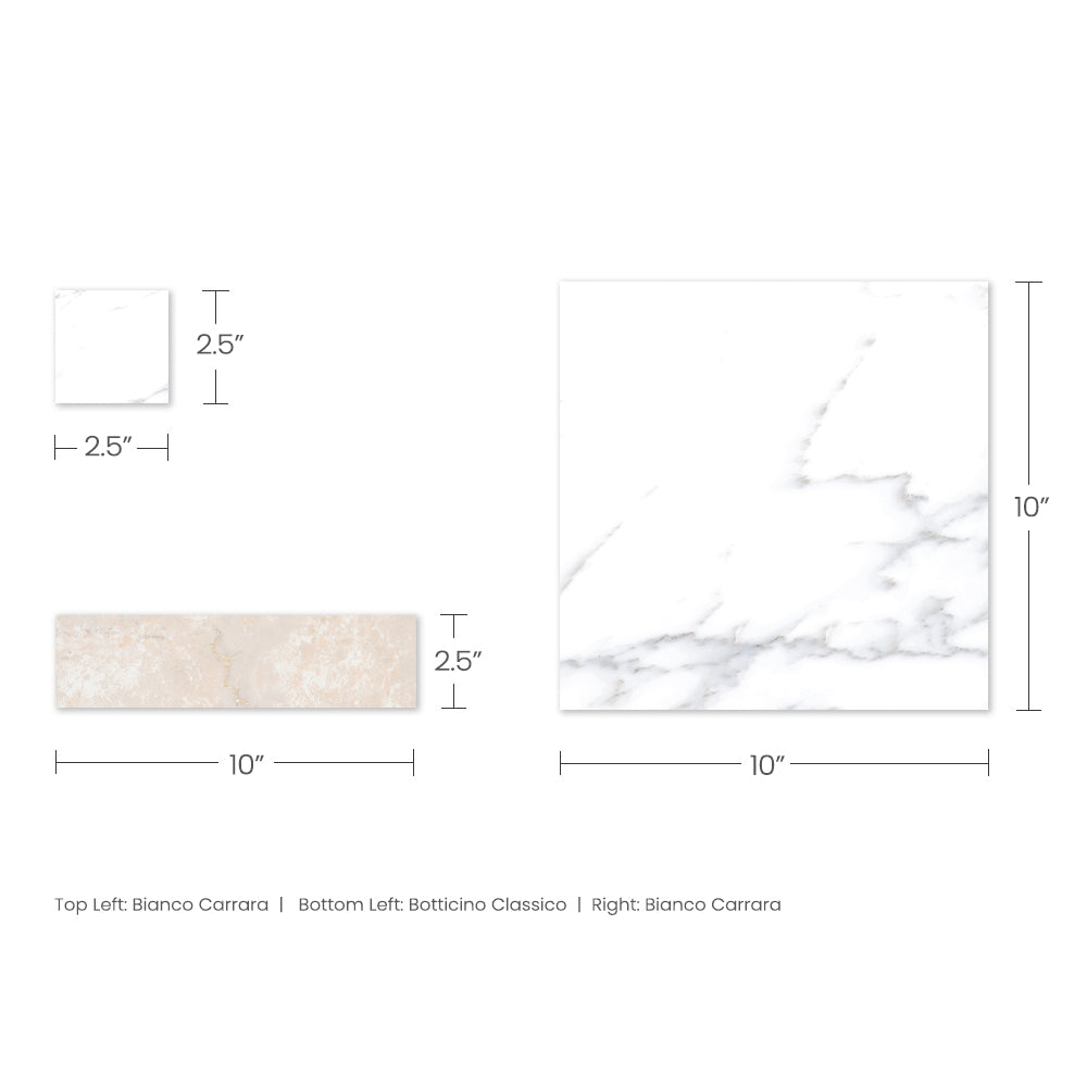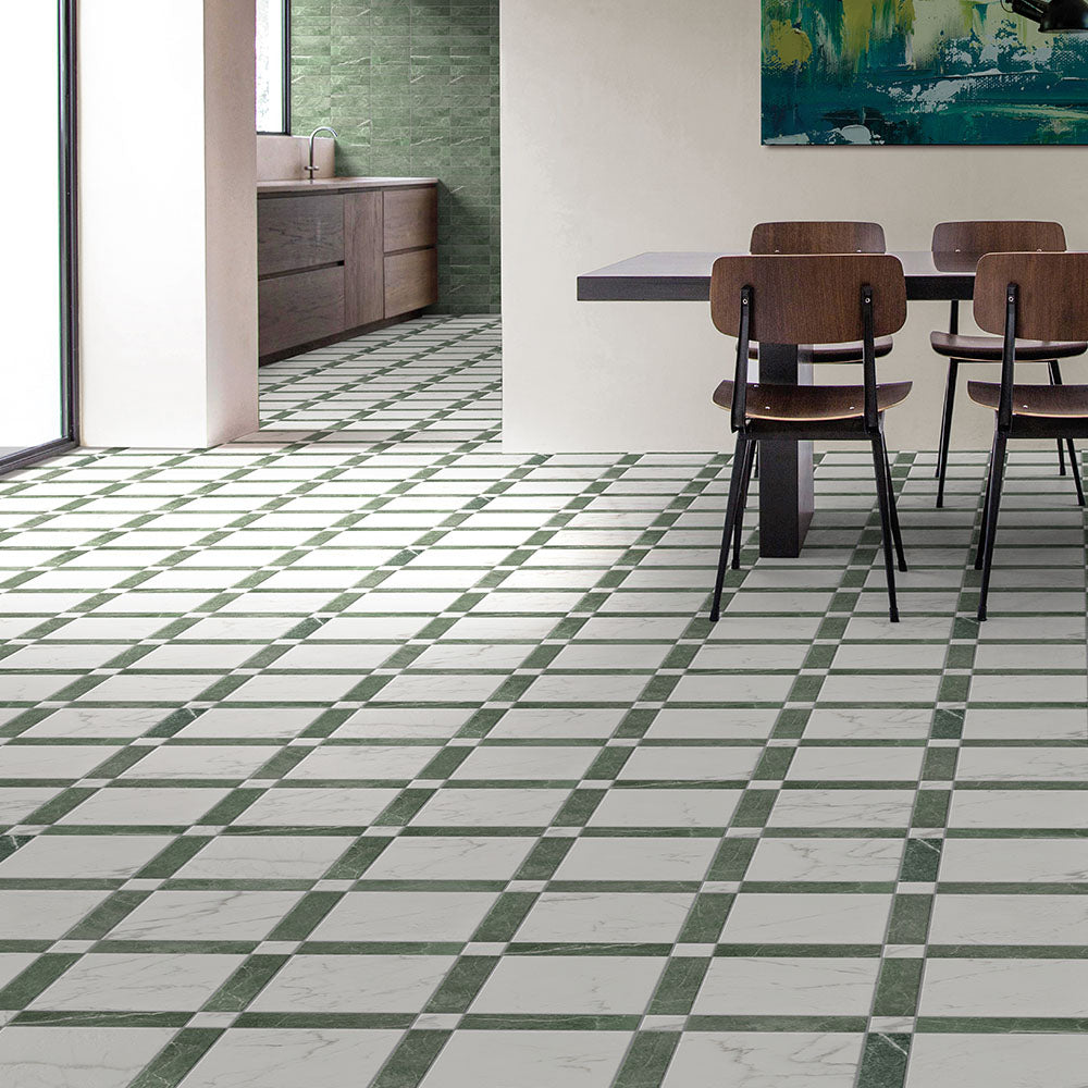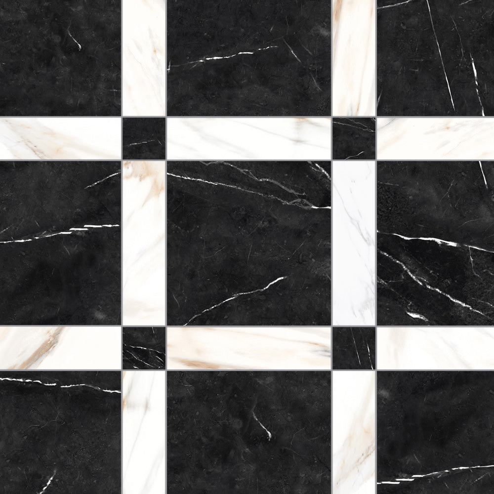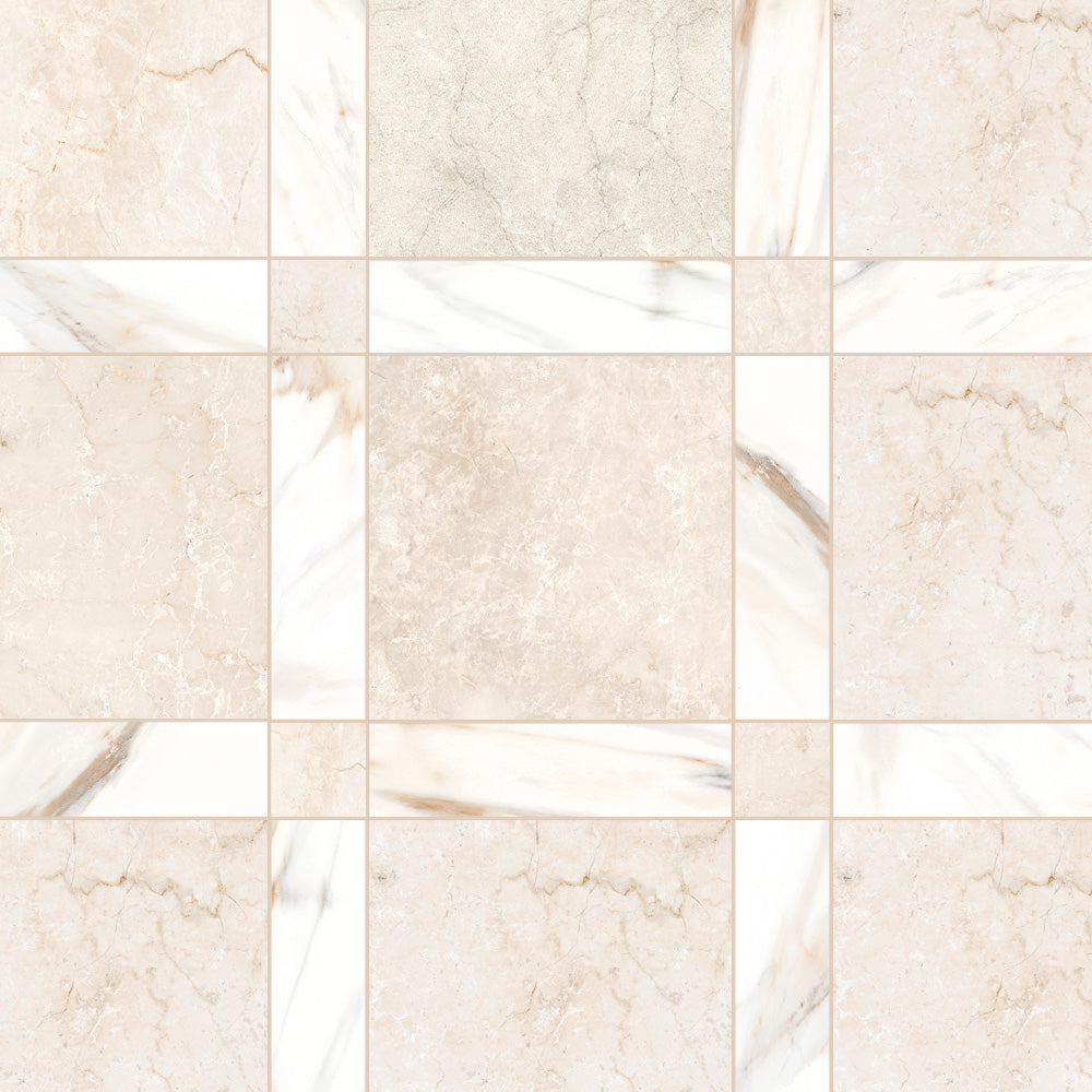 The Tavari Braid Collection introduces a fresh, woven-inspired design that transforms classic geometry into modern artistry. Built on a 10x10 porcelain field, this series features a unique interplay of 2.5x2.5 dot pieces and 2.5x10 rectangular inserts, creating a braided visual rhythm that adds depth and movement to any surface. Drawing from the elegant, marble-inspired tones of the Tavari series, the Braid pattern brings both texture and sophistication to floors, entryways, and feature walls. Its carefully arranged components allow for a pattern that feels handcrafted yet contemporary—perfect for spaces seeking a refined twist on traditional woven motifs.