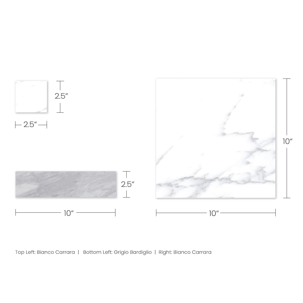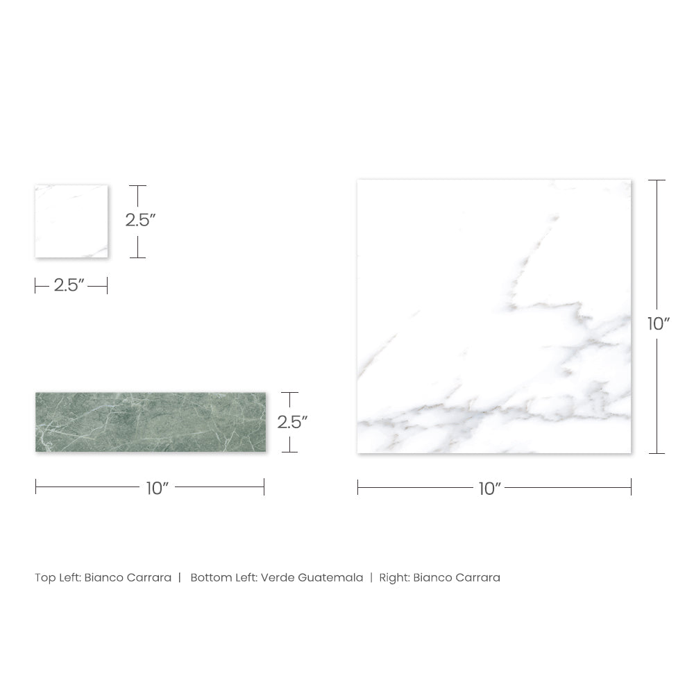 Note: Each unit includes 20 pieces of 10x10 field tile, 20 pieces of 2.5x10 accents, and 20 pieces of 2.5x2.5 dots.