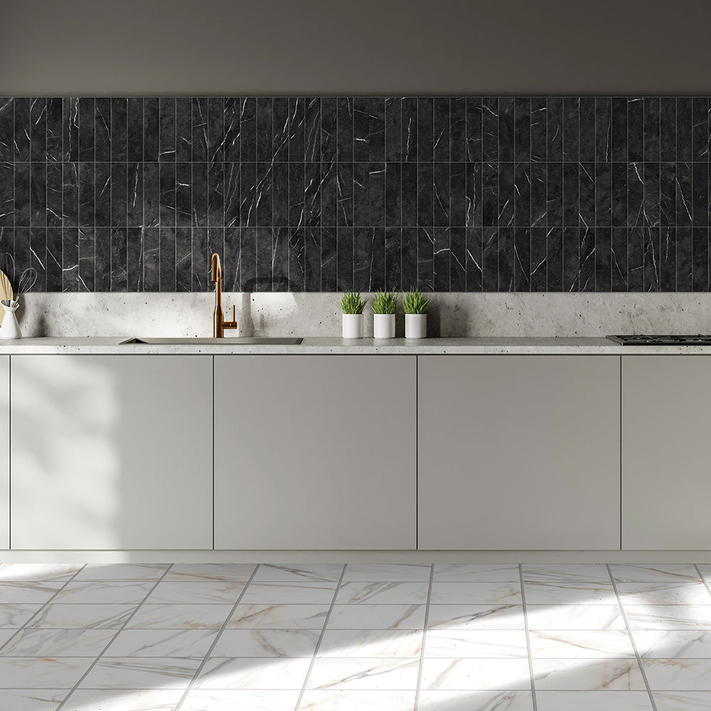 Available in 10x10 and 2.5x10 formats, Tavari offers versatility for both wall and floor applications, allowing designers to mix and match patterns for added visual interest. Its durable porcelain construction ensures lasting performance in residential and commercial settings, while its refined aesthetic brings a touch of luxury to any space.