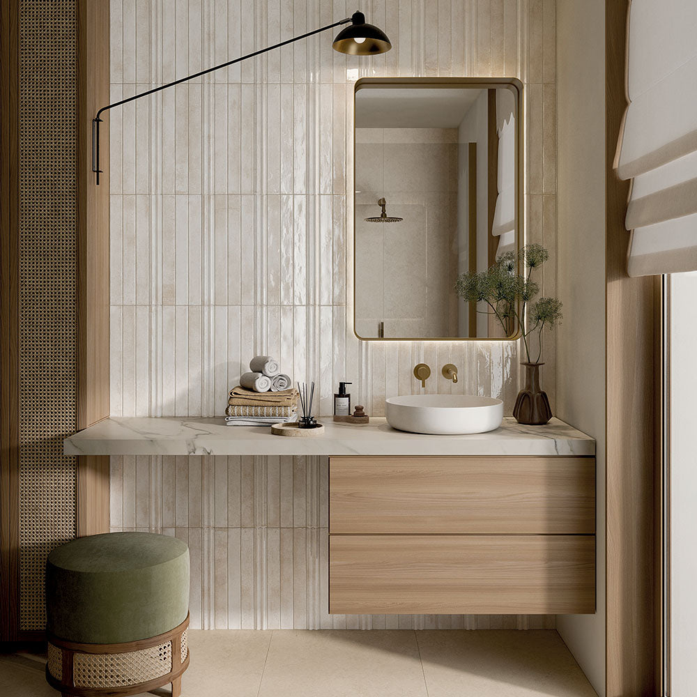 Available in a range of vibrant, contemporary colors, Trace offers endless design possibilities—from bold feature walls to refined accents. Its elongated shape adds modern elegance and visual flow, perfect for vertical or horizontal installations.